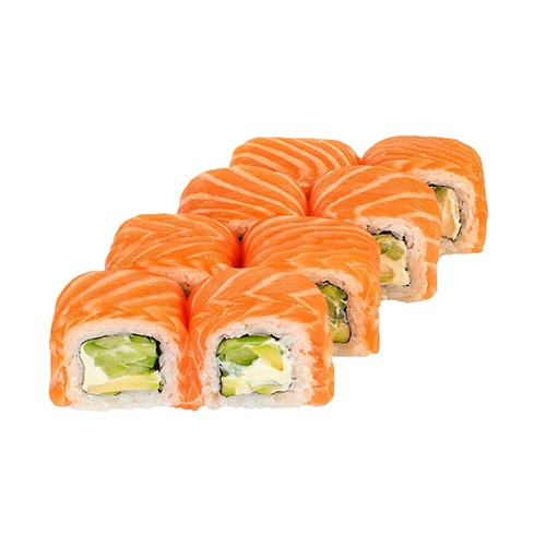 Филадельфия с копченым лососем придуман для тех, кто не хочет суши с сырой рыбой. Нежный крем сыр, зрелый авокадо и вкусный норвежский лосось холодного копчения понравится всем любителям суши и морепродуктов.