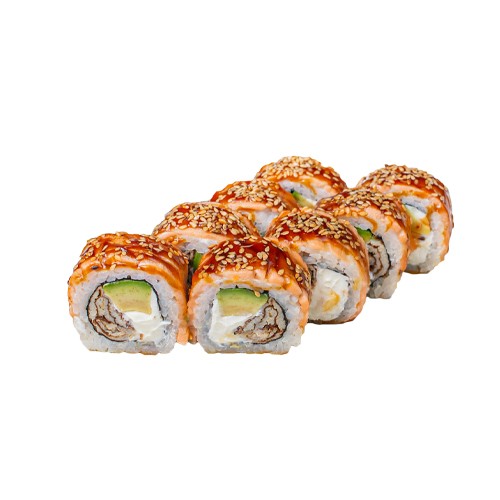 Золотой Дракон - представляет из себя ролл с унаги. Унаги - японское слово для обозначения речного угря, особенно японского Унаги является распространенным ингредиентом в японской кулинарии и является выбором истинный ценителей суши роллов.